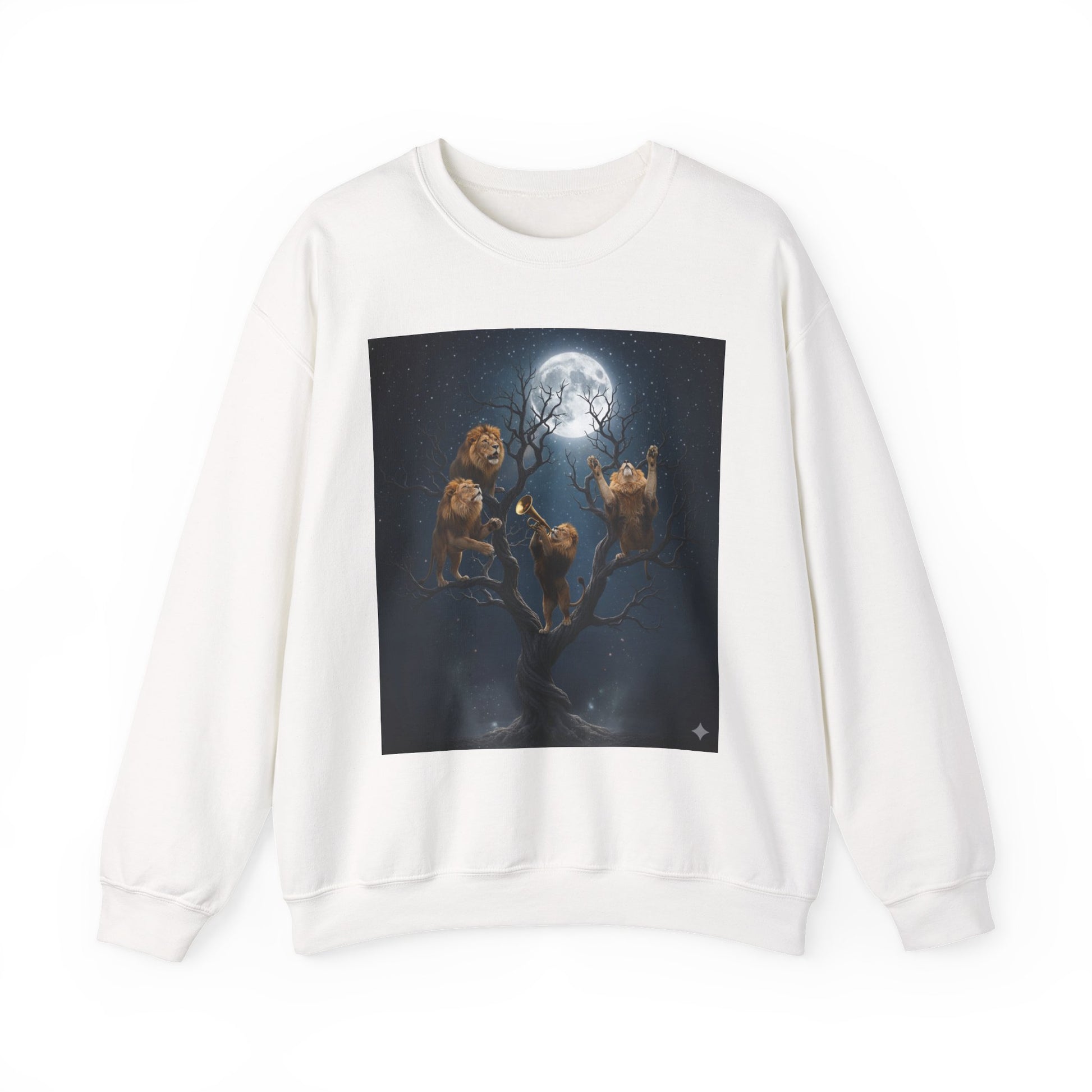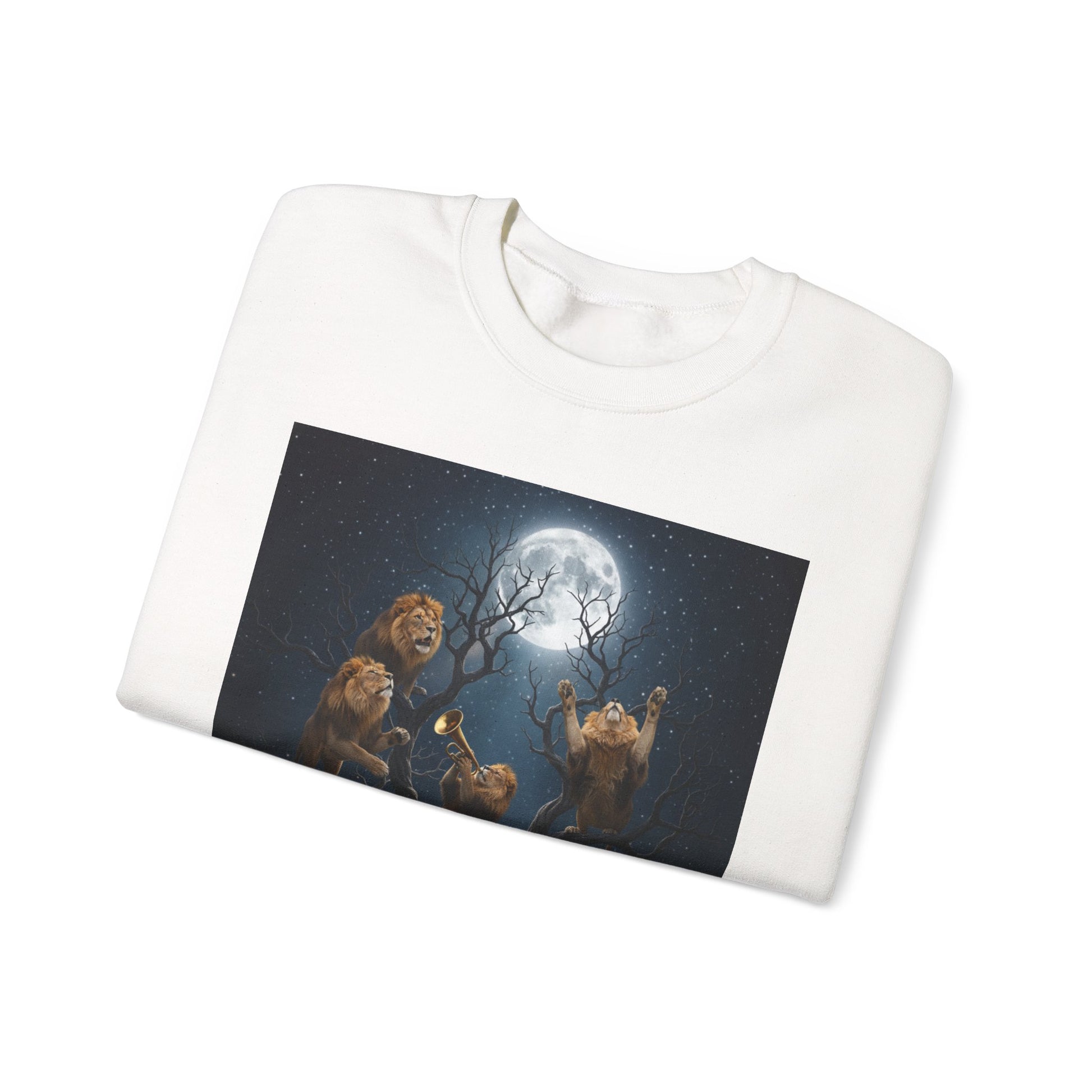 Moonlit Lion Crewneck Sweatshirt - Cozy Unisex Pullover for Nature Lovers, Animal Gifts, Casual Wear, Wildlife Fans, Perfect for Fall